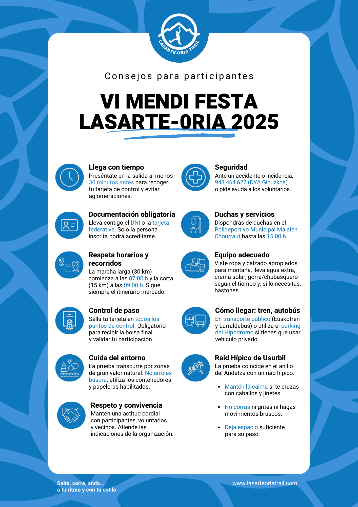 La Mendi Festa de Lasarte-Oria celebra este domingo 28 de septiembre su sexta edición y, como en cada convocatoria, queremos que la experiencia sea segura, responsable y agradable para todas y todos en la montaña.